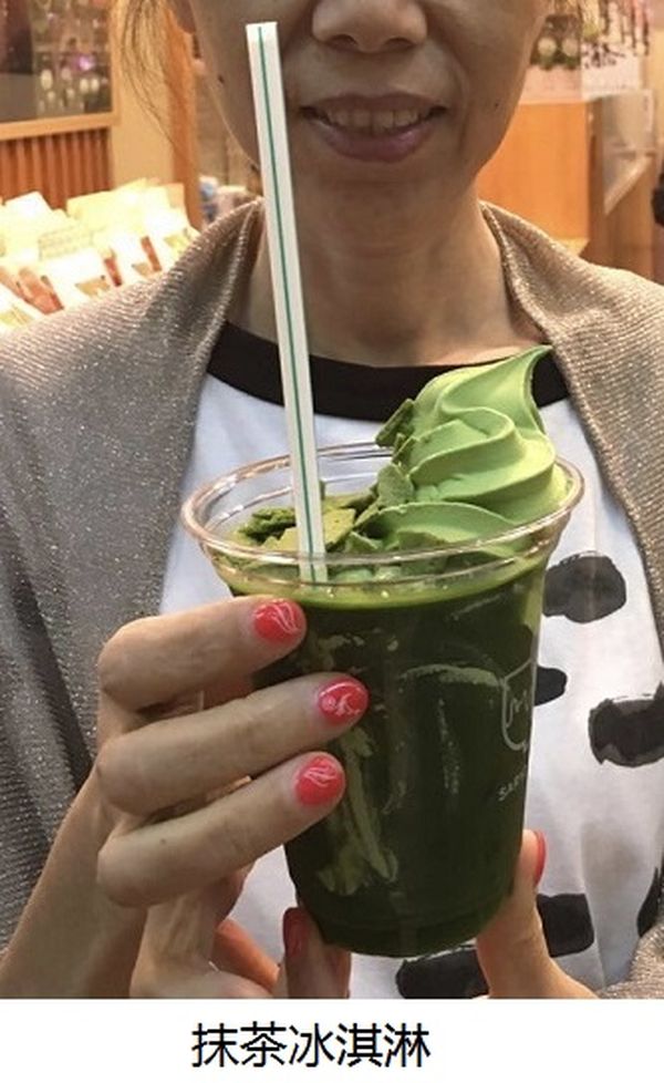 在这绿色的诱惑下,我们品赏了抹茶冰淇淋(见图二)。当去掉了苦涩的抹茶,将其甘甜和香味融进冰淇淋中,甜美的味道夹带着茶香味,这种独有的风味,很难说是在享受冰淇淋还是抹茶。