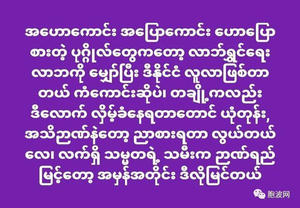 读了以下两则语录,老瓦城人感慨万千。一则语录说:“很多人昧良心说瞎话欺骗曰:投胎到缅甸十分幸运,有福气!”另一则语录却说:“总统(应是前总统敏瑞)的女儿则愤慨地吐出心声:来生绝不再投胎缅甸!”围绕“投生缅甸是福还是祸?”内心纠结不清!