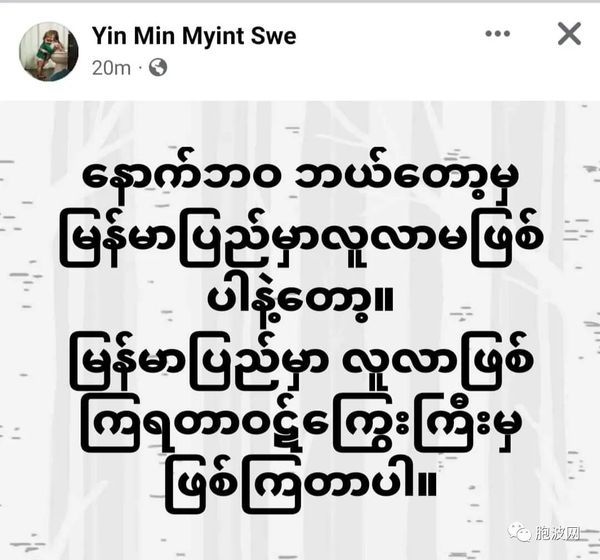 看看当今的缅甸,的确能得出这样的结论:投胎缅甸是祸,是非常的不幸,祖辈找错了地方!请看:自1948年独立以来,缅甸便产生“多色叛乱武装组织”,各立山头,各自为政,谁也不认谁的账。“政府”如同虚设,“拿枪杆子者”说话。而当今疫情后时代比昔日更甚;年过花甲一生的经历的何止“九九八十一难”:六十年代的收归国有、大钞作废、6.26流血事件,让人“谈政变色”;七十年代大学生涯中的:吴丹事件、哥多迈百诞事件;再到八十年代的8888事件、第二次军事政变,乃至21世纪2021年2月的第三次军事政变...感觉一生就是生活于没完没了的“动荡”之中;时至天灾人祸后的今日,生活依然难熬,经过多次的“慌乱”,在缅甸生活犹如“惊弓之鸟”。尽管“白日不做亏心事”但是“夜半敲门”还是“心惊肉跳”!尤其是各种新闻,让人惊恐万状。各处的爆炸声、枪杀声还不够,还要加上所谓“网红”们的甩锅抹黑,将缅甸缅北说得一无是处。别说外界“谈缅变色、望缅却步”,连土生土长于GOLDERN LAND黄金福土的老瓦城人自己也开始丧失信心,常常暗自问自己:是否投生错了地方?为何偏偏要生于如此祸乱的缅甸?