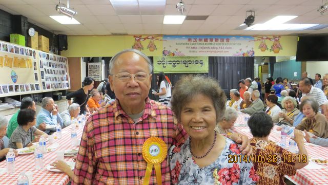我去年满75岁, 由于缅甸会敬老会后, 紧接着是缅华会敬老活动, 自己只参加缅华会活动, 无心参加缅甸会活动。可好友林鸿沛鼓励我, 今年参加, 于是抱着试一试, 亲身体会之情,26日上午, 提早来到缅华会所, 只见不少义工进进出出, 如同蜜蜂采蜜, 忙忙碌碌, 不由自主地, 自己也参加布置。见到缅甸会秘书内乃益, 向她询问情况, 她热情表示, 凡年满75岁, 缅甸来的移民, 均欢迎参加, 只要简单登记即可。我登记并领取葵花胸佩, 乐捐20美元, 入席专为寿星安排的坐位。