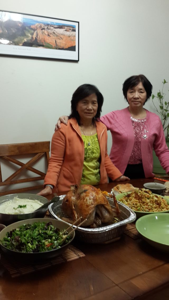 我们家族也不例外,小妹夫工作的公司,每年都有一隻大火鸡赠送给員工们,很自然的、聚会就安排在他们家,除了他们負責烘焙火鸡外,其余几家也各自准备不同的拿手餐点供应。节日当天,四家子的子姪、儿孙們都來了,嘩!夠热鬧的,真难得的三代親友同堂。聚少離多的親友们見面个个言笑甚欢,年轻一辈把握机会:或唱歌耍乐、或侃侃而談,交流着各自的工作经历、职场趣闻…孩童们互相追逐嘻戏無間,好一幅活跃、生動画面。晚餐时刻, 大家围坐長桌, 快乐进餐。津津有味的品尝着香喷喷的火鸡切片, 各种美食, 甜品, 果汁和啤酒,喧哗笑语中,热鬧气氛勝过除夕团圆飯,每人盡兴直至夜幕深降方归。