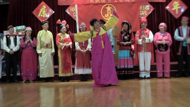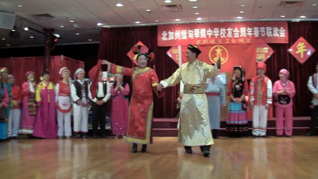 (1) 我们南加华友会的大哥大 – 张少战,谢金兰伉俪扮演彝族的金童玉女给大家献上虔敬祝福