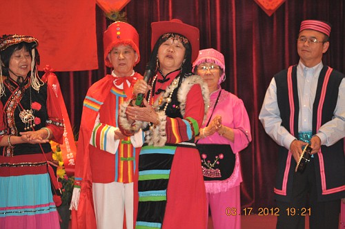 第二日的晚会,并非我们自炫自夸,代表南加华友的节目颇具新意,创意,含意深,文明古老大国,精诚团结56个民族来个大汇演。给北加学友们一个感叹,激赏!鲜艳夺目的民族服饰令人耳目一新,令人心蕂沸腾悦耳动听的歌谣,听后绕梁不止三日。