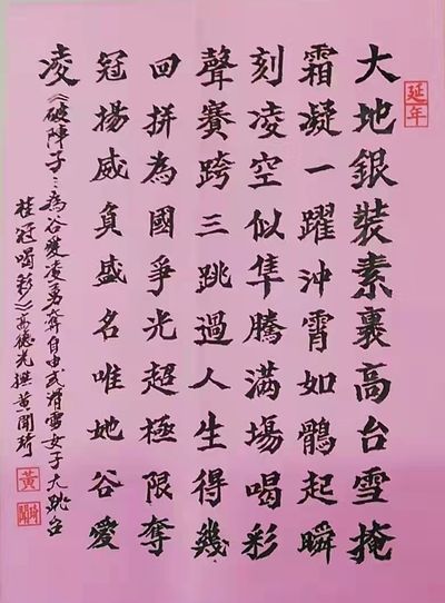 破阵子……为谷爱凌勇夺自由式滑雪女子大跳台桂冠喝彩(文/德光,书法/黄闻琦,练子明,阮伟生,高寿荃)