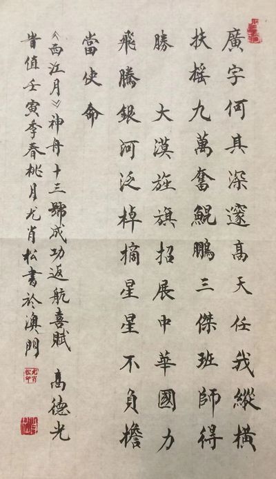 西江月……神舟十三号成功返航喜赋(文/德光,书法/阮伟生,白善华,赵维富,练子明,何丽婵,尤肖松)