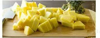 粗暴的几刀下去,菠萝变成了菠萝丁。稍微放点盐更好吃哦。