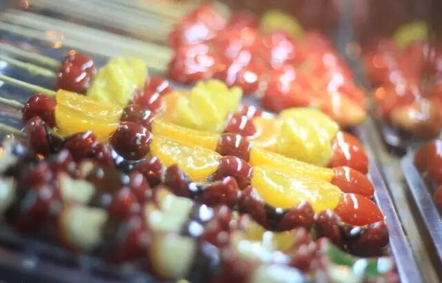| 制法 | 挑选新鲜饱满、大小均匀的山楂果洗净中间切开,填入橘子,用竹签一个一个串成串。把糖倒入锅中,加入没过糖的清水熬10分钟。待糖熬到呈黏稠的、透明微微泛黄,蘸一下糖浆在冷水碗里沾一下,拿出后用牙咬。粘牙说明火候不到,咬起来发脆就可以了。然后快速地把串好的山楂在锅内轻蘸并转动,也可借助勺子将糖浆均匀地淋在上面。盘子抹上食用油,将蘸好糖的山楂串放盘上冷却。