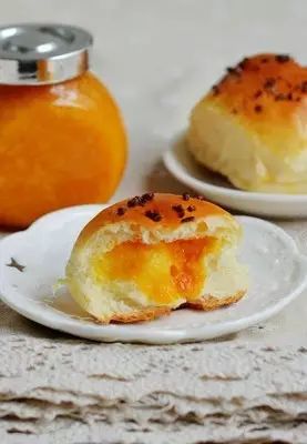 | 制法 | 后油法揉至可拉出稍具延展性的薄膜静置30分钟成约30g的小面团,金像粉比较吸水,水量根据自己所用面粉调节,面团以不黏手为宜,可以借助少许手粉按扁,抹少许橘子酱,包起来然后收口朝下摆入烤盘中。瓷盘内涂厚厚一层黄油既容易脱模,上色也好看,置温暖湿润处发酵至2倍大,取出刷一层蛋液。烤箱预热170度,中上层20分钟改中下层继续10分钟,上色过深时盖锡纸 20-25分左右,蛋糕模的面包取出瓷盘至少30分钟,温度根据烤箱调节。