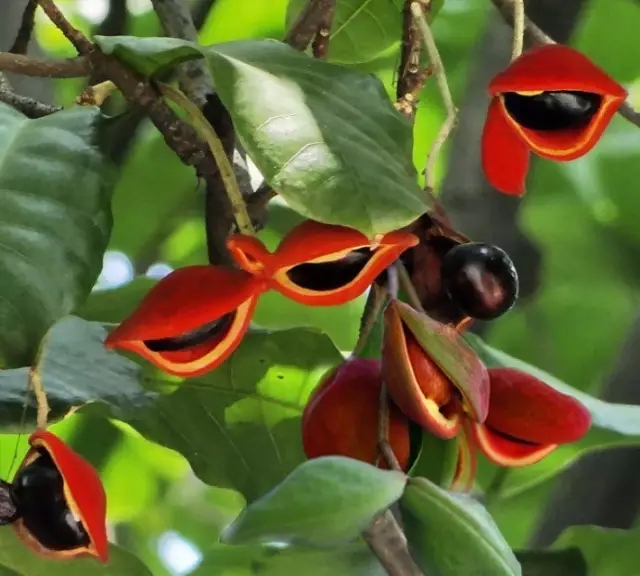 ▼叶长椭圆形,所以又被称为丹凤眼,种子煨熟后味道和板栗差不多~