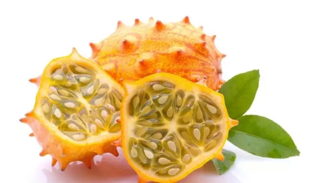 ▼又叫非洲蜜瓜,表面是橙黄色的,越黄越甜,内部是凝胶状,像果冻一样~看它的籽是不是很像黄瓜?它和黄瓜是一个属目的哦~