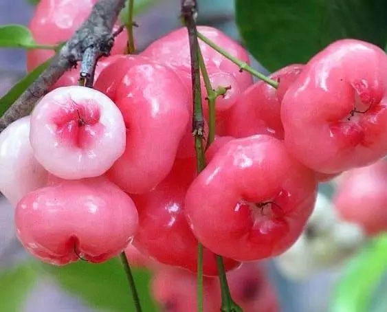 ▼在南方比较常见,在海南莲雾又被叫做“甜不”和“扑通”,味道和苹果差不多,但是质地更松散一些
