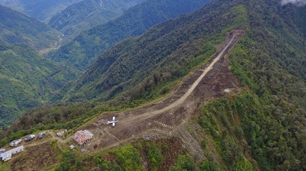 山顶机场2014年年初,中国广西壮族自治区河池市在海拔2221英尺(约 677米)高的山顶上建了一座新机场。