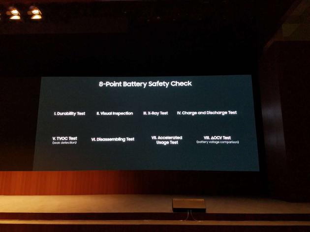 在经历了数月的调查之后,三星从Note7身上吸取深刻教训。针对性制定“8项电池安全检查措施”用以确保电池安全。包含安全检查、电池外观检查、X光检查、电芯拆解检查、TVOC检查、ΔOCV 测定、充放电检查以及用户使用场景下的安全性检查。
