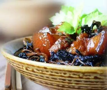 材料:五花肉500克,苋菜干150克,姜10克,八角1个,香叶2片,油适量,酱油适量,料酒适量,冰糖适量,盐适量,鸡精适量