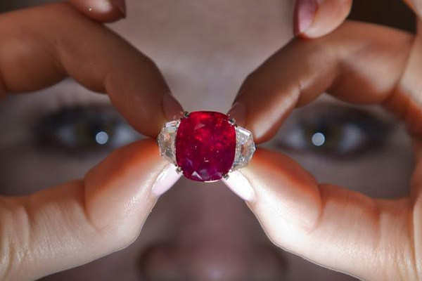 来自缅甸的日出红宝石(Sunrise Ruby)重达25.59克拉,有着浓艳纯正的红色,并且在苏富比日内瓦拍卖会上拍出了3042万美元的高价。最让人叹为观止的是,这颗日出红宝也是目前红宝石拍卖纪录中的王者。