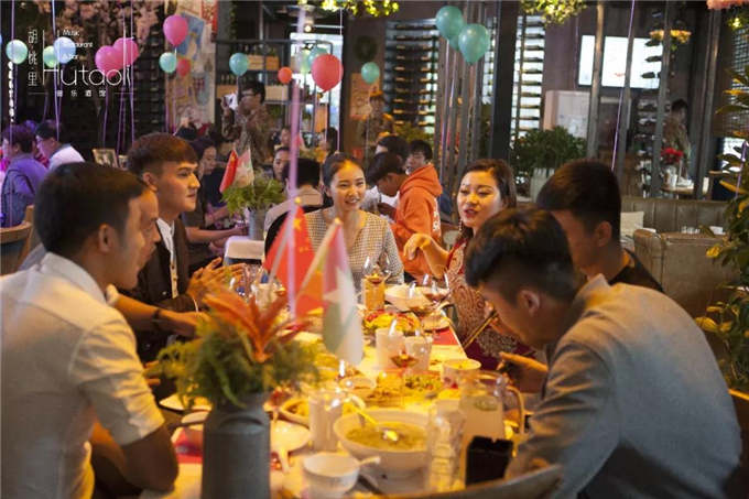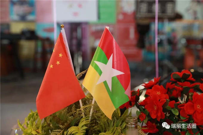敏格拉巴(音译:你好)”,一群穿着缅甸传统服饰的年轻人说着一口流利的缅语,站在红毯前恭候入场嘉宾。会场内彩球缤纷,桌上的中缅两国国旗搭上配饰,显得庄重却不失活泼。这并不是中缅两国间的重要会晤,这是瑞丽素素缅语工作室一周年庆典的现场。