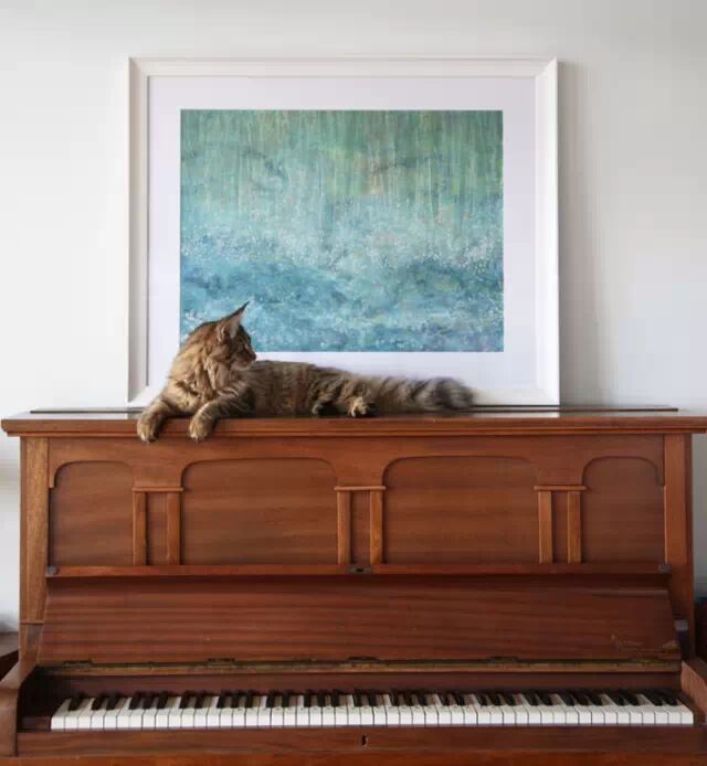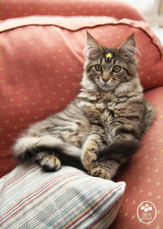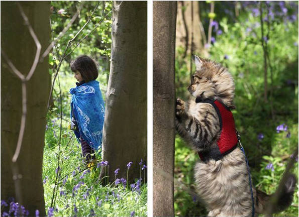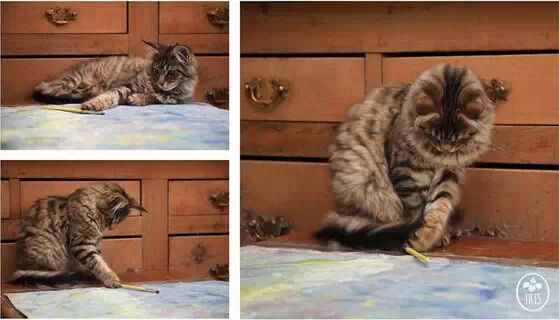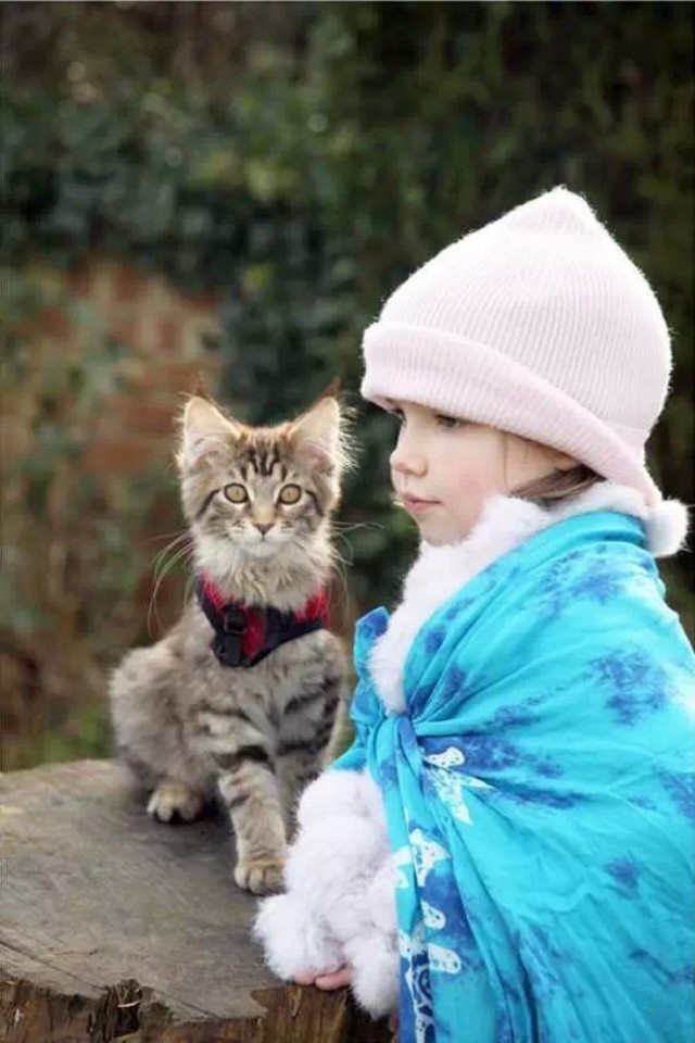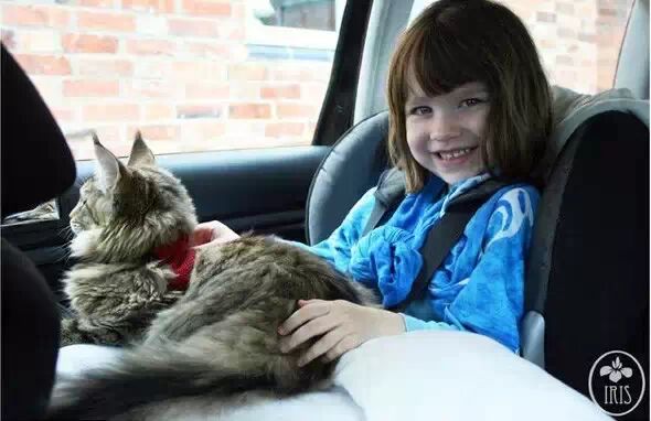 但我们今天想讲的不是她的画,而是她和她的宠物猫的故事。在确诊之后,Iris 的父母想了很多办法来帮助她更好的与人交流,他们还给 Iris 带来了一个新朋友。2014年2月,一只叫 Thula 的缅因库恩猫来到了 Iris 家,一段美丽的友谊从此展开。
