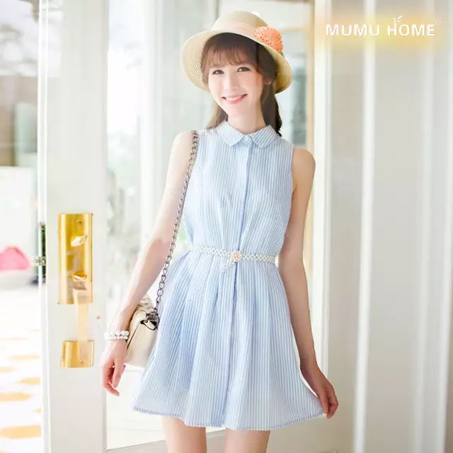 时尚的窄肩设计,微阔的A字裙摆,带着少女般的清新可爱味道,腰带设计可随意调节高度哦。