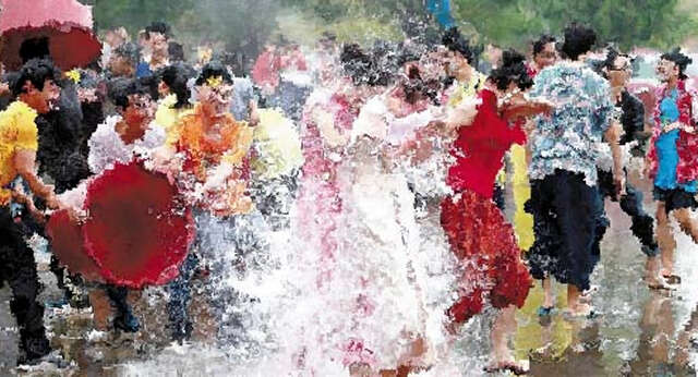老师告诉我们,泼水节源于一个古老的传说:很久以前,掌管雨水的天神帝释天与人间的恶龙争斗,最终用清水洗净了世间的污浊。从此,人们便在每年最炎热的季节互相泼水,祈愿雨水丰沛、疾病消散。原来这四处飞溅的水花,承载着如此深厚的祝福与美好的祈愿!