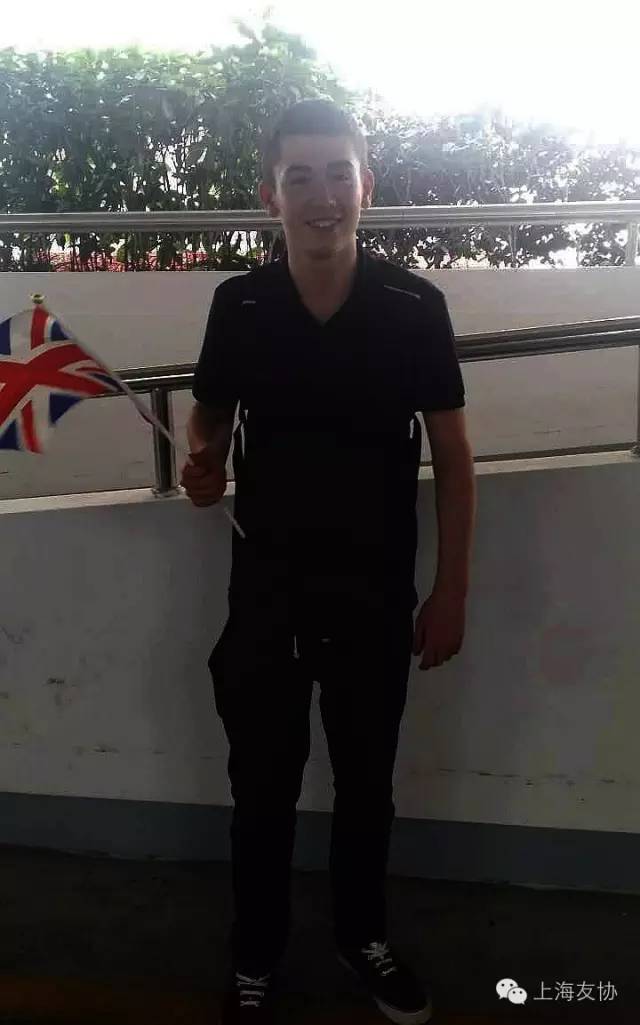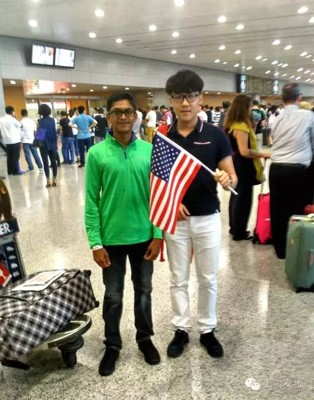 美国少年,你也是一个人啊?接机的哥哥陪你合影。