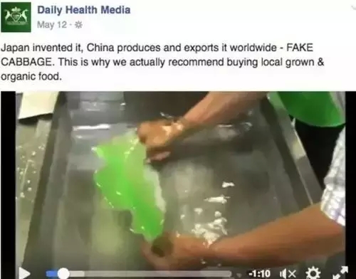 事情得从一个视频说起。6月下旬,加拿大一位男子在脸书上上传了一个视频,并配文“我再也不会买中国的卷心菜了。” 视频中,制作人员在水上用蜡和染料制作卷心菜。速成的卷心菜不论是外表还是内部的结构,与真的卷心菜都十分相似。