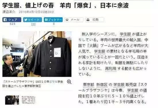 日本校服涨价竟是因为中国人爱吃羊肉火锅?