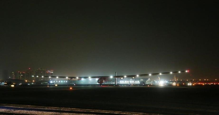 7月26日,全球最大太阳能飞机“阳光动力”2号抵达阿联酋阿布扎比巴廷商务机场。
