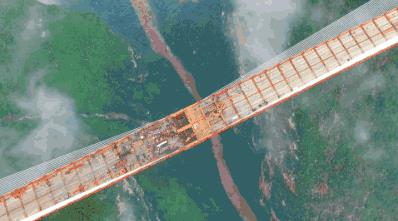 全长1341.4米。同时,大桥东、西两岸的主桥墩高度分别为269米和247米。除此之外,由于钢桁梁节段均是在地面拼接完成后,再进行整体吊装,对比传统在空中拼接的工艺而言,施工精度更高,同时安全系数也更高。