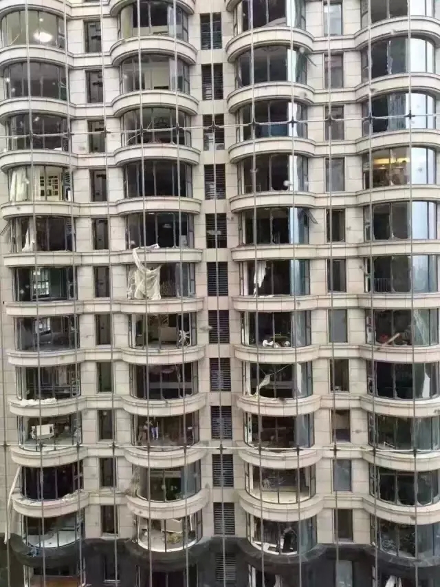 ▲厦门源昌宝墅湾玻璃墙面几乎全部破碎