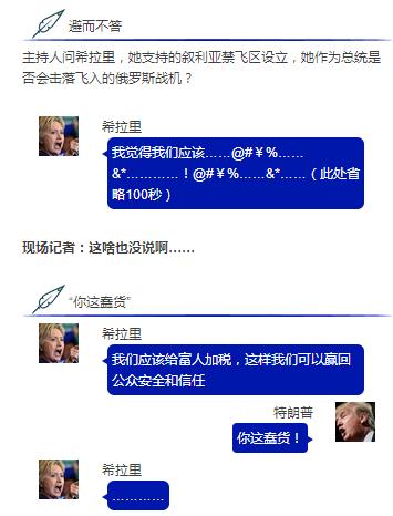 希拉里说了49分钟,特朗普说了34分钟。希拉里打断特朗普5次,特朗普打断希拉里37次。