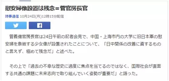 据日媒报道,日本政府最高发言人24日对“慰安妇”少女像的设立表示非常失望。