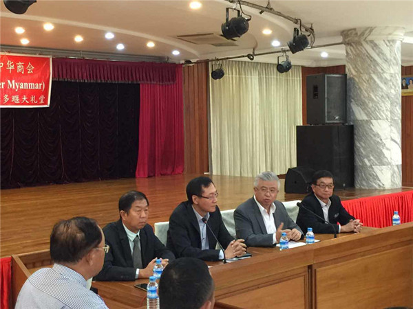 11月10日下午5时,缅北中华商会在金多堰大礼堂举行欢迎新加坡中华总商会代表团一行座谈会。