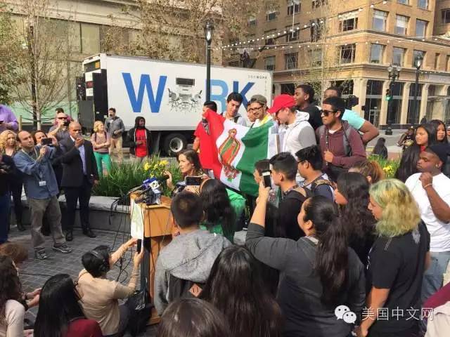 Oakland市长Libby Schaaf(上图中)安抚抗议民众