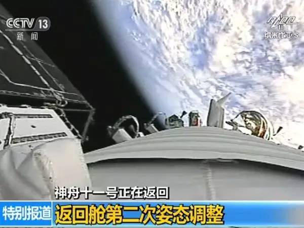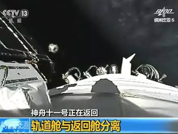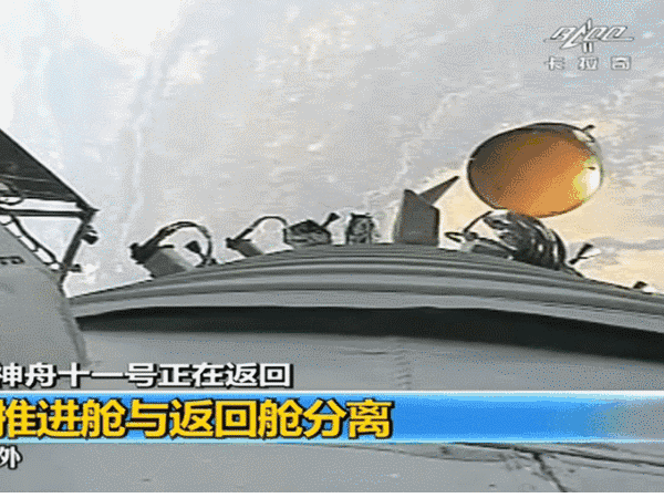 13时38分,神舟十一号飞船推进舱与返回舱分离
