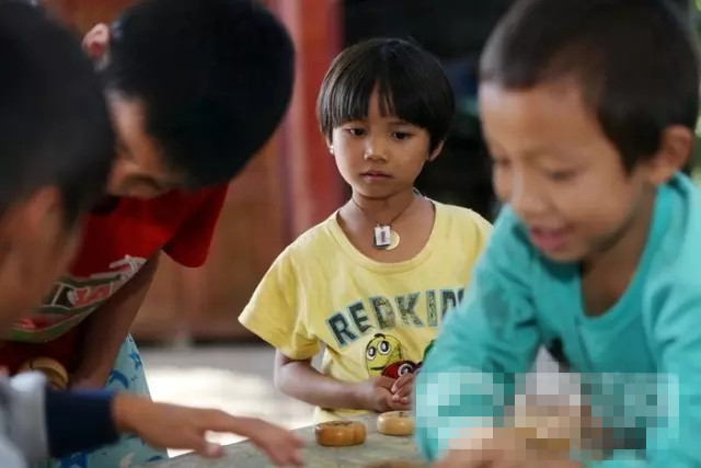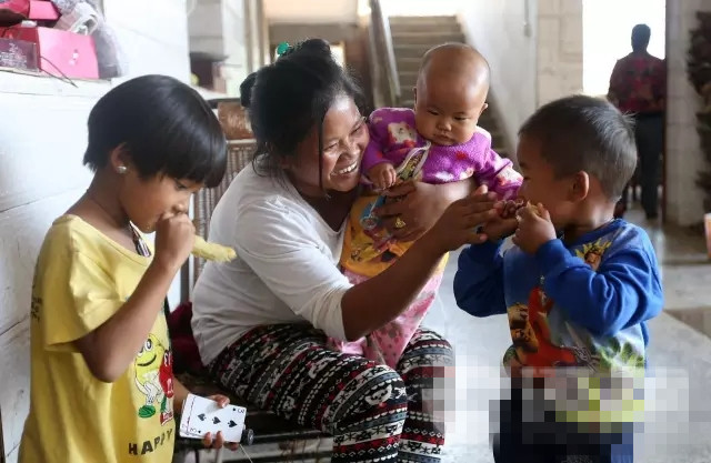 小女孩胡谋辉(音)的母亲艾鲁(音)是个典型的边民妇女,汉族人,但不太会讲普通话,也不会用汉字写自己的名字,丈夫常年在中国畹町镇打工,自己一个人在缅甸梆赛抚养着4个孩子。