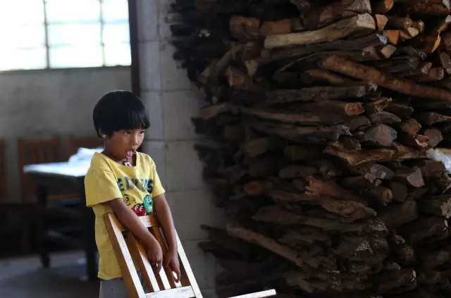 五岁的缅甸小姑娘胡谋辉(音)正在畹町临时居住地玩耍。11月20日缅北武装冲突爆发后,她的妈妈艾鲁(音)带着他们兄妹四人连夜渡河过境,来到中国投靠正在这边打工的父亲。父亲的雇主一家收留了他们。