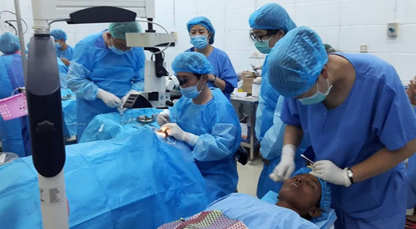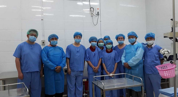 这时,突然病人有点紧张,甚至有点晃动,手术室里的气氛立即更加紧张起来,只听得姑娘小赵微细的缅语:‘奶奶!别紧张哦!现在很重要!忍一下,马上就好啦……奶奶!’老奶奶似乎缓松了些‘对啦!奶奶!就这样!再等一下就好啦……’刚才孩子们介绍过,有时病人紧张起来,自己却不能紧张,得赶快‘安抚’病人,话语不行,还得用手轻轻抚摸,如同对待自己的爷爷奶奶一样,一般病人都是老人,都是来自农村的贫困老者,受到孩子们的轻声细语的安抚,老人们情绪得以控制,手术得以顺利进行。