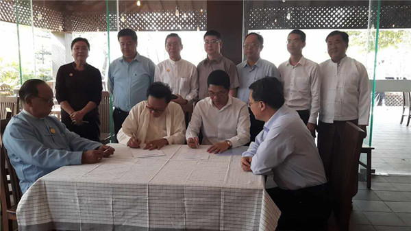 在嘉宾的见证下,中国福建省福州华侨中学董事长江雄与缅甸曼德勒福庆学校董事长黄鹏飞签署了两校之间建立友好学校的协议书。