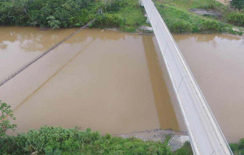(右侧为中铁建铜冠修建的萨莫拉大桥,左侧是原先铜达依米区进出使用的吊桥)