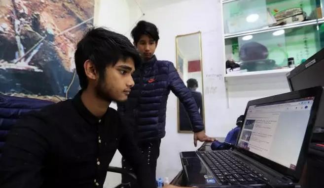 (弟弟和貌吾敏拉一起浏览网页)