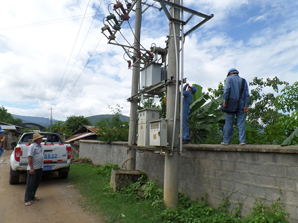 老宁已对各个用电乡寨熟门熟路,就如之前每次的到来一样,今天每到一个乡寨,都会被熟悉的缅甸老乡唤过去家中看看自家电线和设备是否有问题,而老宁总是毫不推脱,带着满腔热情前去查看。这不,刚好此次带着班组里的两名年轻小伙子,娴熟地帮助缅甸用户固定线路、包紧漏电接口、换掉老化线路。而当巡查到一些存在安全隐患的设备时,老宁便严肃地直接上门对客户一一交代清楚安全隐患及整改要求,千叮咛万嘱咐后才又能放心巡查下一个点。