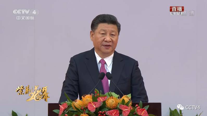 同胞们、朋友们!斗转星移,岁月如梭。香港已经回归祖国20年。依照中国的传统,男子二十谓之弱冠,今天就是香港特别行政区的成年礼,正所谓“如竹苞矣,如松茂矣”。回首香港特别行政区的成长历程,我们可以自豪地说,20年来,香港依托祖国、面向世界、益以新创,不断塑造自己的现代化风貌,“一国两制”在香港的实践取得了举世公认的成功。