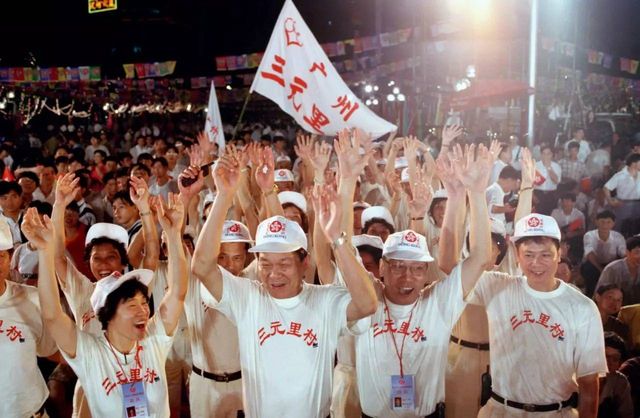 1997年6月30日晚,广州三元里地区农民喜迎香港回归祖国。新华社记者黄鉴秋摄