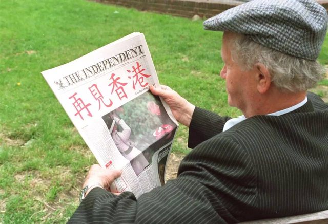 1997年7月1日出版的英国《独立报》,头版登出通栏中文标题“再见香港”。新华社记者庞伟良摄