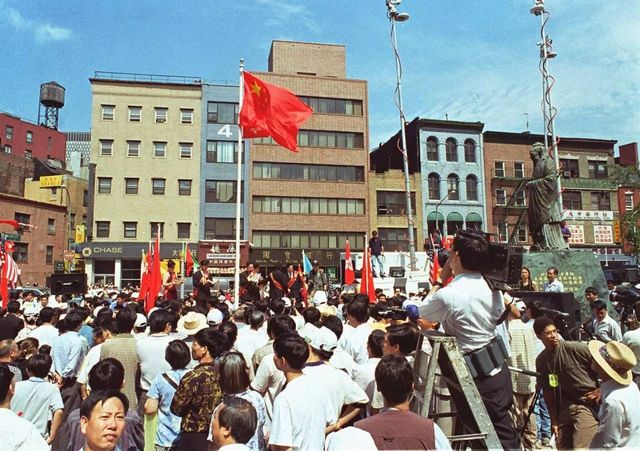 1997年6月30日,纽约各界华人在唐人街隆重集会,庆祝香港回归。新华社记者毛众役摄