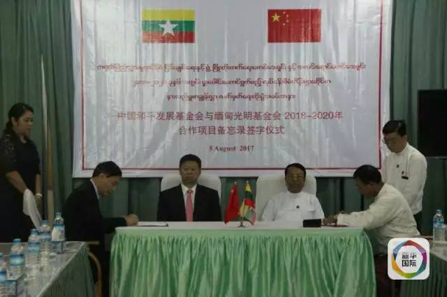 宋涛和缅方官员共同见证中国和平发展基金会与缅甸光明基金会签署合作项目备忘录
