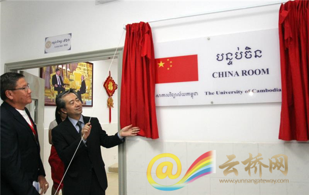 当天,熊波大使还与柬埔寨首相助理大臣高金洪共同为柬埔寨大学“China Room”中国主题教室揭牌。柬埔寨大学外语学院中文专业的负责人胡恩宝介绍,柬埔寨大学刚开设了中文专业,今后还将加强与中国高校的合作。