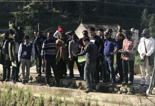 11月9日,"发展中国家渔业硕士学历班"、"缅甸稻渔技术培训班"等渔业专家团一行60多人莅临浙江省青田县,考察交流与学习"稻鱼"综合种养新模式,考察组渔业官员来自亚洲、非洲及拉丁美洲等20多个国家。