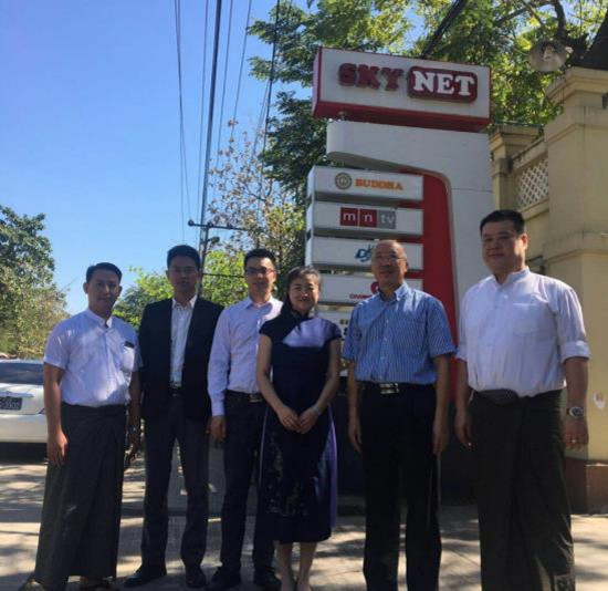 (与SHWE THAN LWIN CO.,LTD. 集团旗下的电商和广播电视媒体公司总经理SOE HTAIK AUNG等合影。左三:王华文)