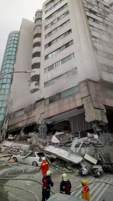 台湾地震失联人数达173人 倾斜大楼又发生火灾搜救困难